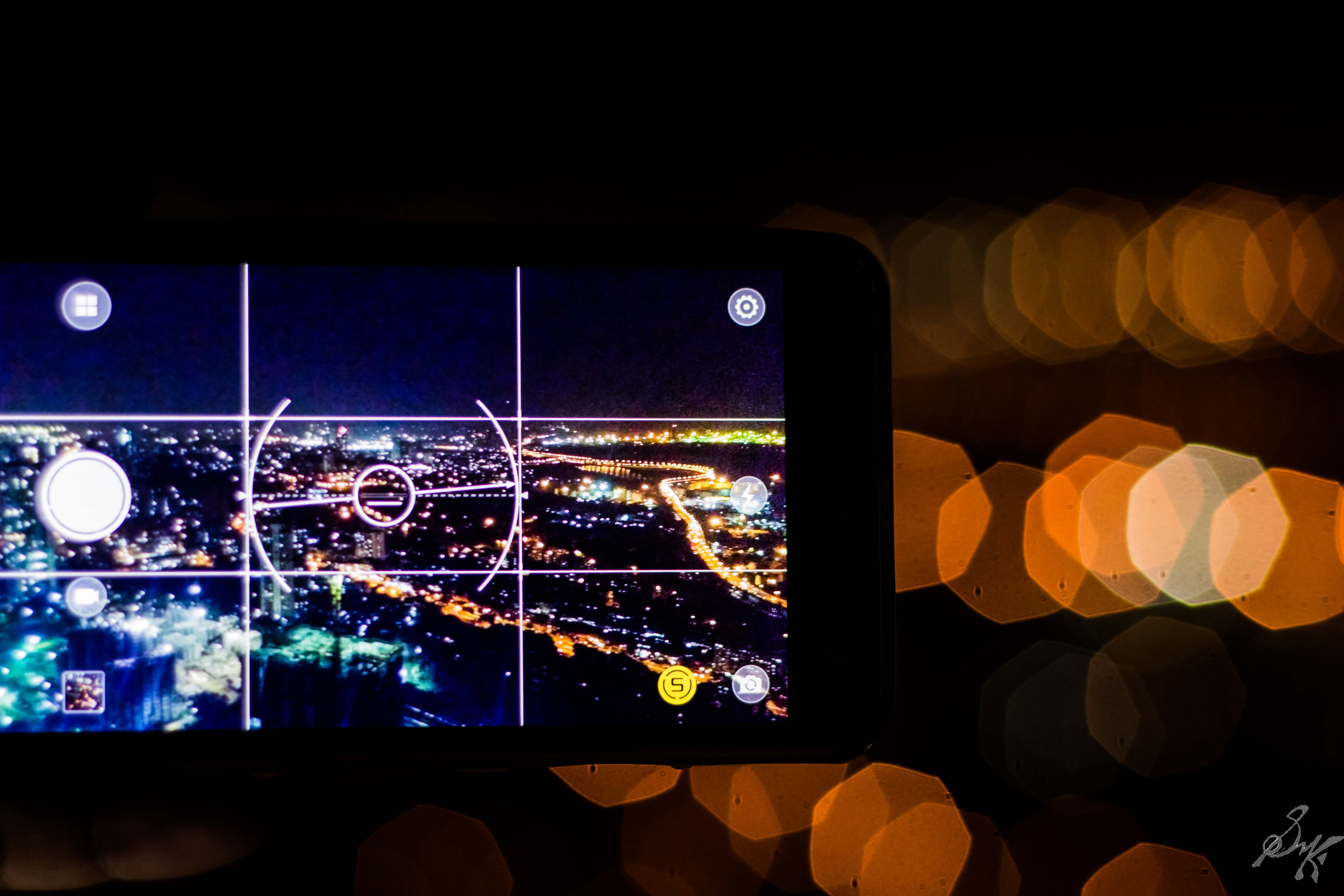 Tonight, like many before, I was at office past sundown, and I had camera with me. Had a concept to try out too. So, off I went to the terrace to try out the shot.