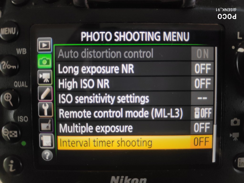 For this to be done, we need a device which is capable of taking photos at a fixed interval. So, either a camera with built in option for interval shooting, or an intervalometer which can be coupled with the camera. Below are some photos and their explanation. The camera being used here is a Nikon D7200.