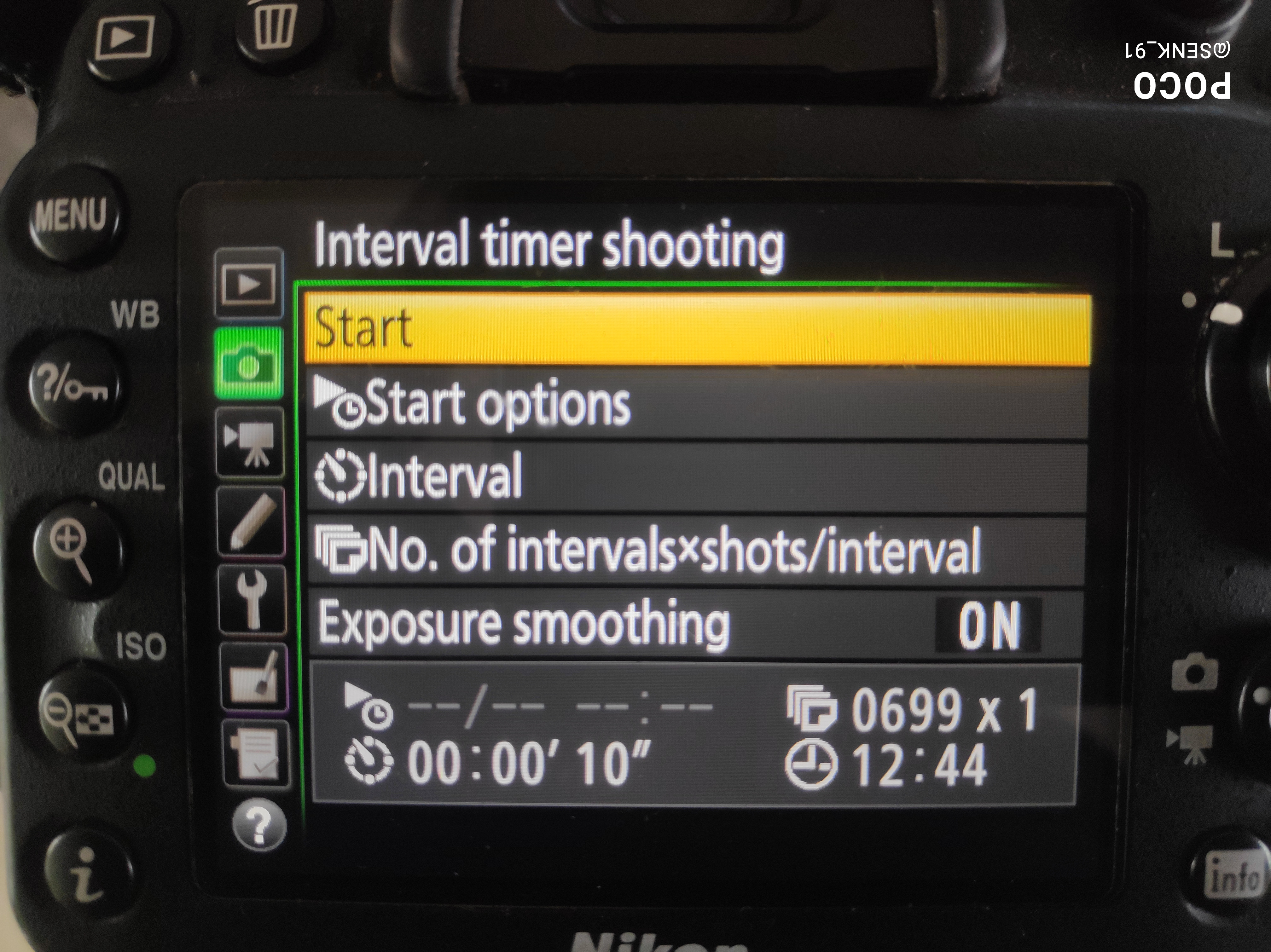 The photo above shows a setting where 699 photos shall be taken, with a 10 second interval between them. So, total exposure time is 6990 seconds. The setting can be done as shown in the below photos.