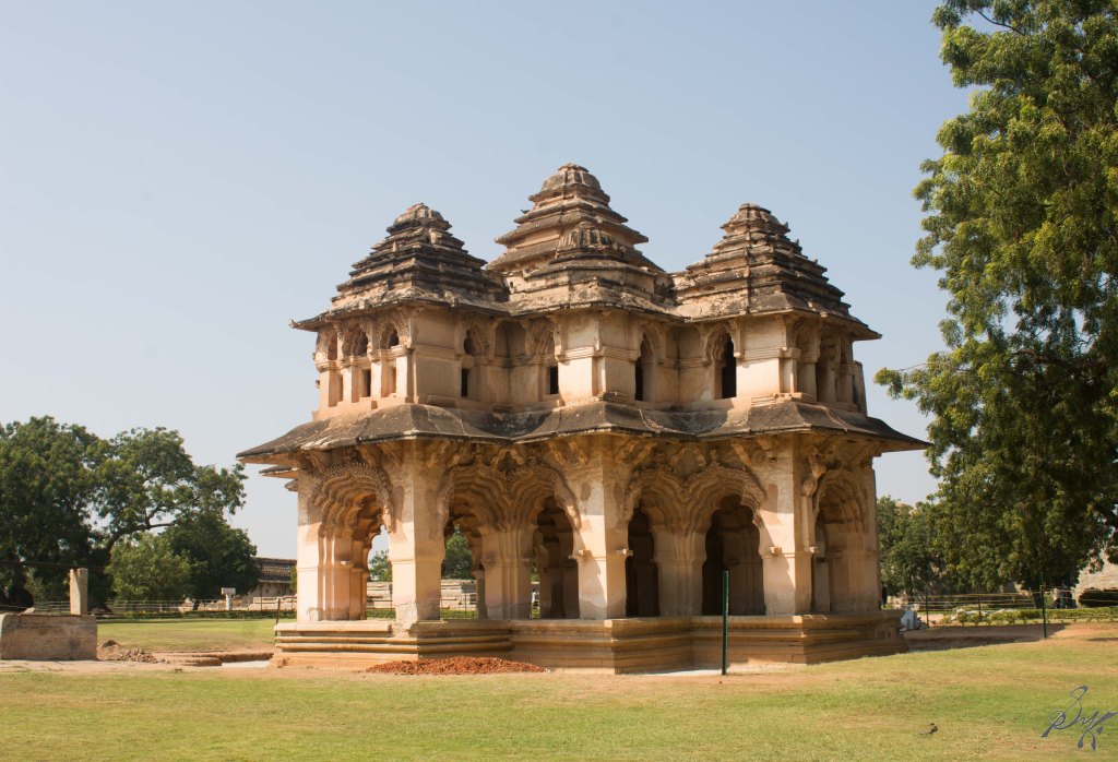 Next up, our stop was the Lotus Mahal. The mahal was pretty, that’s for sure; what was more interesting is the ingenious way to keep the place cool. The walls are double layered and have a means to make water flow through them. So, as the air circulates, it looses heat to the water in circulation and keeps the inhabitants cool.