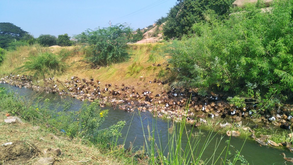 En route there was a stream, in which there were ducks. Hundreds of them, and all were trying to swim upstream. Seemed like a ducks’ school of swimming.