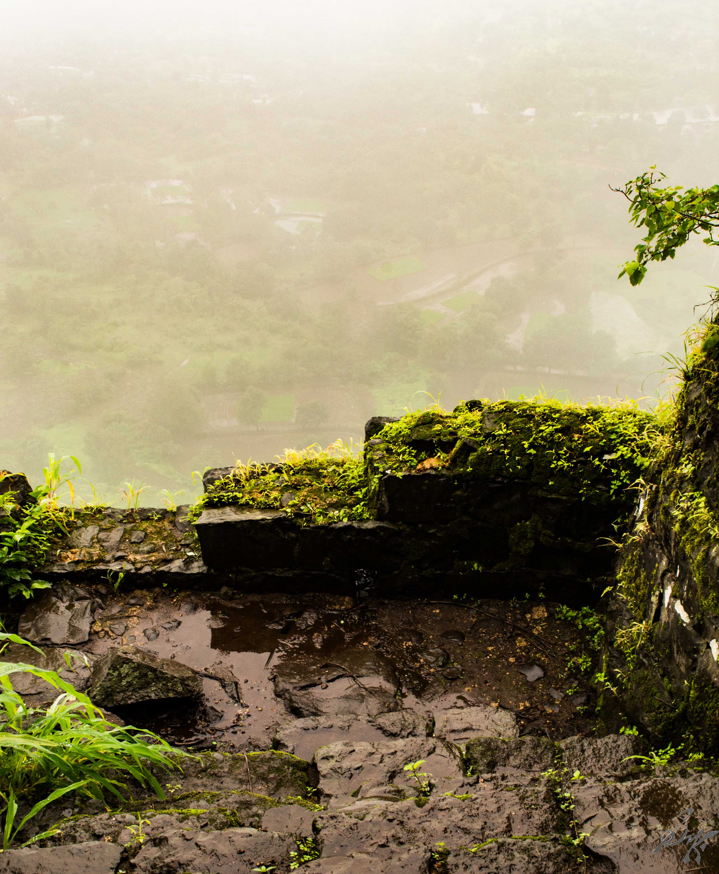 Keeping true to Murphy’s Laws and the weather reports, we lost our ways a couple of times, splashed into huge puddles of water and finally made it to the hill and found it engulfed in fog.