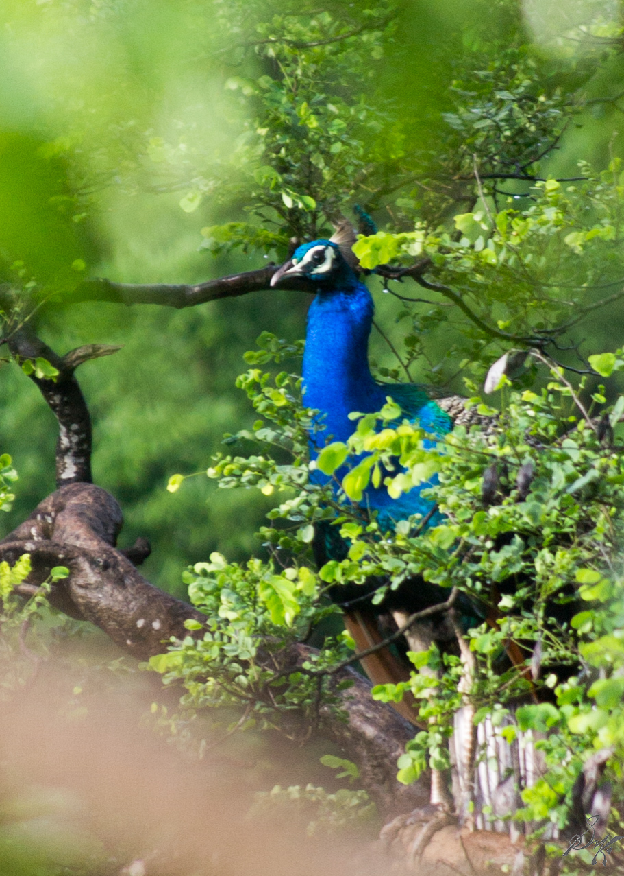 The place is filled with peacocks. One ought to have a minimum of 400mm reach on the lens to be able to capture these beauties. I had a 55-200 on me. I must admit, the shots were difficult. Not enough light, some camera shake, and yes, a lot of cropping.