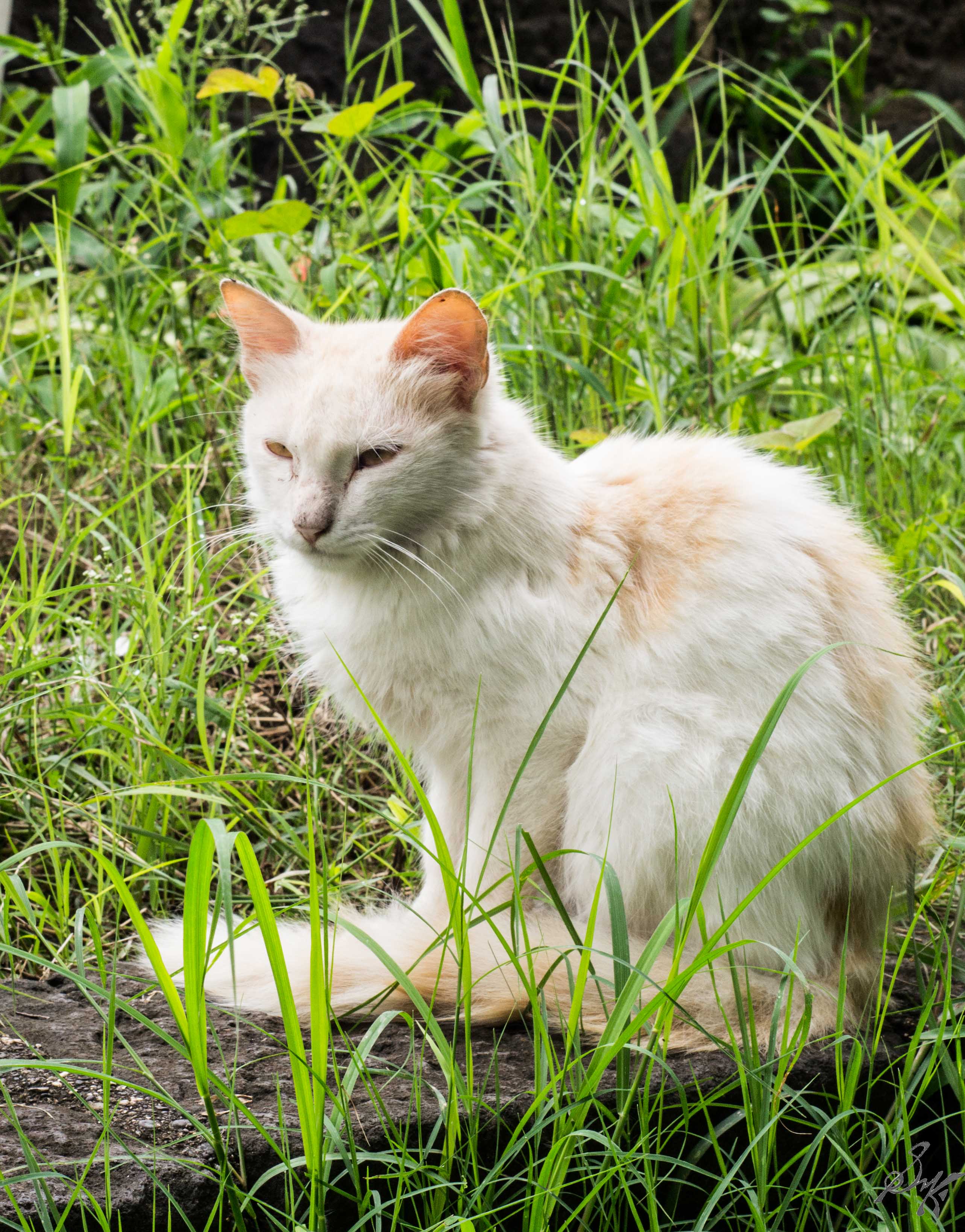 A week back, I was at Pune for my post graduation convocation ceremony. As a rule, I had my camera along with me. After all was over, as we were packing our bags to return, I notice this kitten, sleeping soundly. Approached her a bit and stroked her fur, she purred contently. I pulled out my camera, fired off a few shots, and she was surprised at the sound, a bit curious too I guess! Loved the expression on the face 🙂